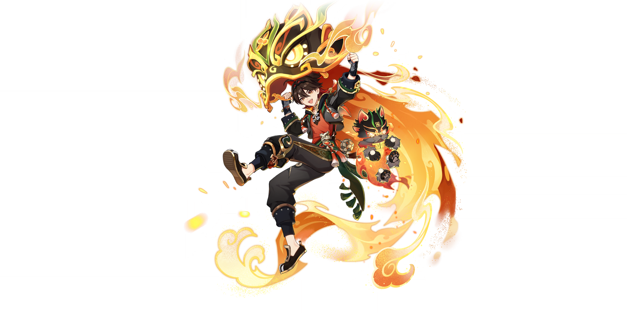 舞兽态势持续期间,提高嘉明的抗打断能力,下落攻击 · 踏云献瑞落地时,或瑞兽登高楼的向前扑击结束时,若嘉明的生命值高于50%,将再次唤出猊兽 · 文仔。