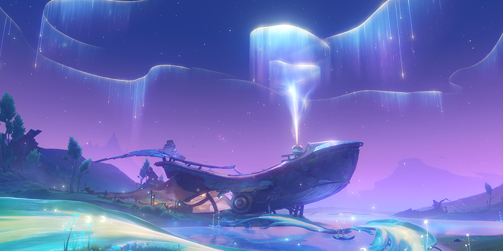 由巨大齿轮构成的心脏早已停跳,钢铁的血管也已生锈,直到谁人将它从梦中唤醒,巨兽向着星空,呼出了一口长长的、彩缎似的气。